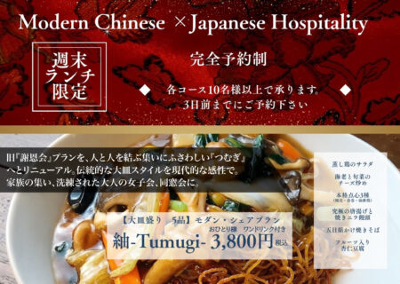 | 概要 | 大切な方の新しい出会い、親交会など、思い出に残るひとときを。 ※3日前までにご予約ください。 ※個室をご希望の際は別途室料(御1人様500円)がかかります。 |