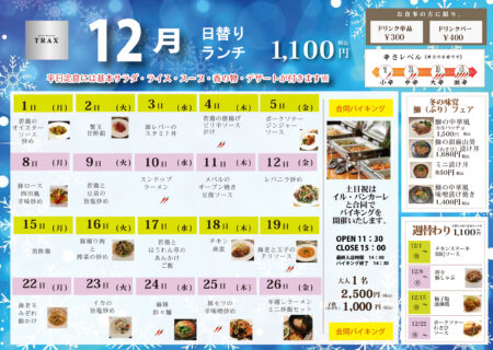※日曜日はランチをランチバイキング・夜の営業はお休みいたします。